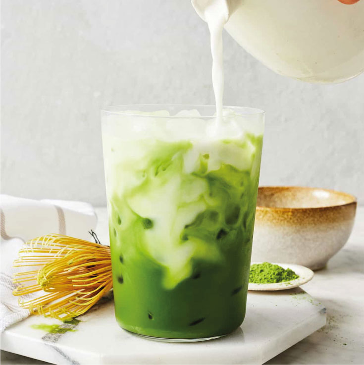 Đổ từ từ hỗn hợp matcha vào ly và thưởng thức.