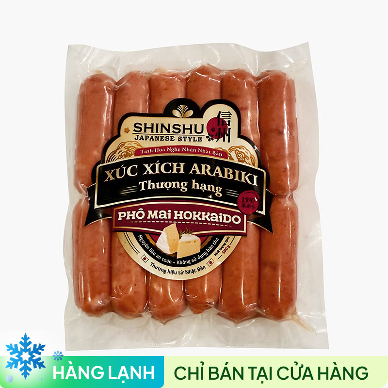 Xúc xích Arabiki là dòng xúc xích thô có hàm lượng thịt thật cao trên thị trường. Sử dụng những tảng thịt lớn, sạch và tươi nguyên để xay thô, không trộn thịt vụn, kết hợp với phô mai Hokkaido tạo nên một loại xúc xích đậm đà vị thịt và ngọt dịu, béo mịn ngon khó cưỡng