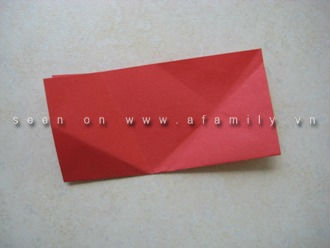 ![]() | 7. Ngay tại đường thẳng trùng khít hai mép giấy của hai phần gấp vừa rồi bạn gập ngửa hai bên ra đằng sau. |
