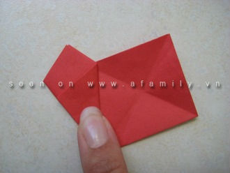 ![]() | 2. Gập chéo góc vuông phía dưới bên phải lên trên rồi lại mở ra. |